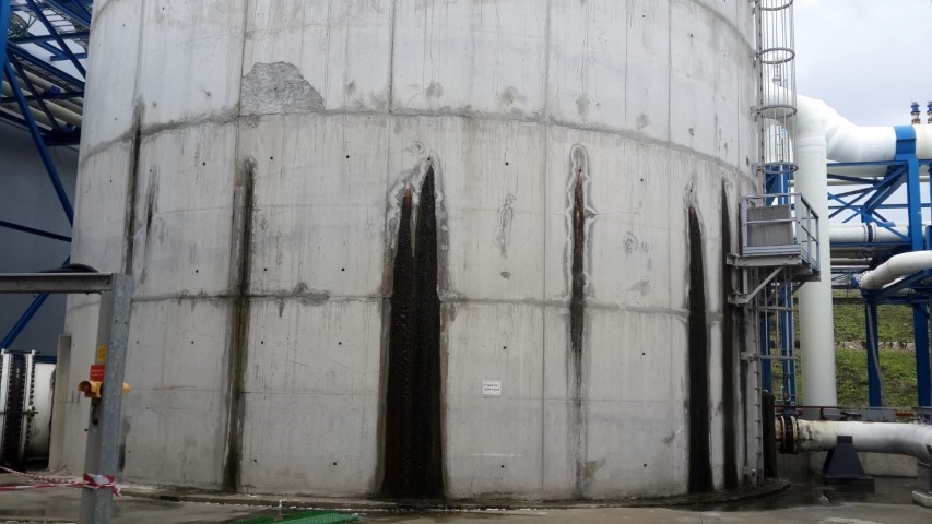 תיאור: במתקן ההתפלה בחדרה עומדים להם שני מכלים מבטון בנפח 1800 קו"ב כל אחד. עוד בשלב ההקמה של הפרויקט מכלים אלה צופו ונאטמו בחומר פוליאוריטני מיצרן מוכר. בשני המכלים מערכת האיטום לא הוכיחה את עצמה ומיכלים אלה נזלו כבר בשלבים המוקדמים של הפעלת המתקן. כבר לפני 4 שנים ע.נ.פ ביצעה את חידוש האיטום בפוליאוריאה במיכל המערבי. הבשיל הזמן בסוף 2014 ע.נ.פ נבחרה בשנית להוביל את מלאכת שיקום ואיטום המיכל המזרחי. מעבר לברור שתפקיד הציפוי הוא לאטום, במקרה זה תפקיד הציפוי מקבל משנה תוקף משום שהמים במכלים אלה נמצאים בשלב הביניים של תהליך ההתפלה ובשלב זה הם תוקפים את הבטון כך שהציפוי משמש לאיטום והגנה גם יחד. (זוכרים את משולש התכונות של הפוליאוריאה)