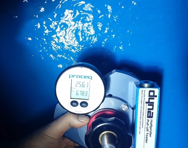 בבדיקות שליפה שביצענו במספר מוקדים הגענו לתוצאות של 2.5 מגפ"ס כאשר הכשל היה בדבק שהדביק בין מכשיר השליפה (הדולי) לפוליאוריאה כלומר כושר ההדבקה הוא לא פחות מ-3 מגפ"ס כאשר רוב המפרטים בארץ דורשים 1.5 מגפ"ס. אשר מהווה לפחות פי 2 מהדרישה המקובל